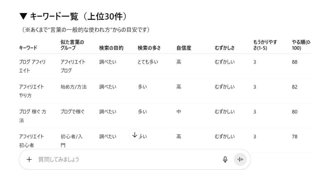 記事ネタ探し(キーワード選定)は完全AI任せ。
